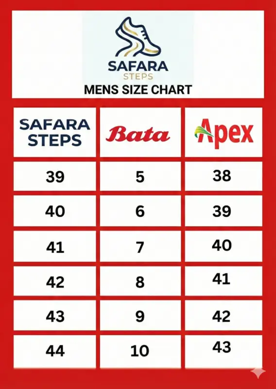 আপনার Bata বা Apex জুতার সাইজ অনুযায়ী Safara Steps এর সঠিক সাইজ খুঁজে নিন।